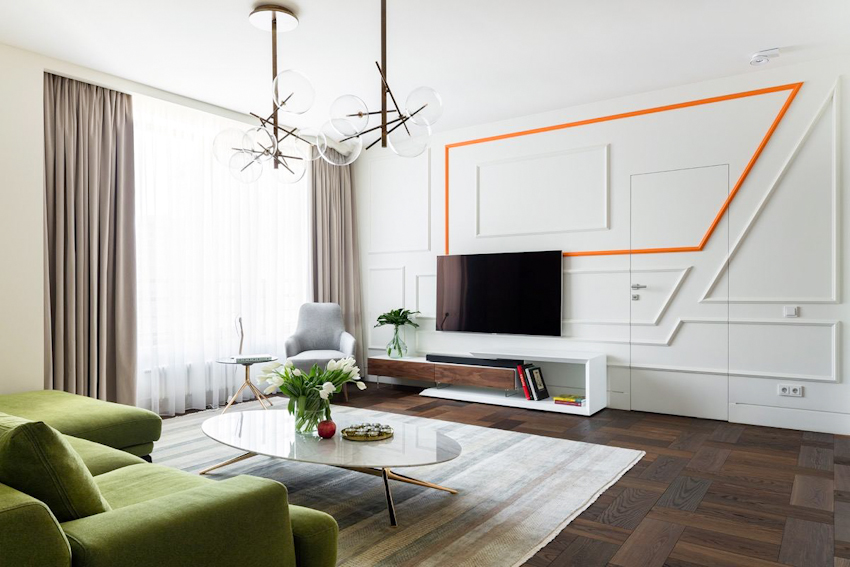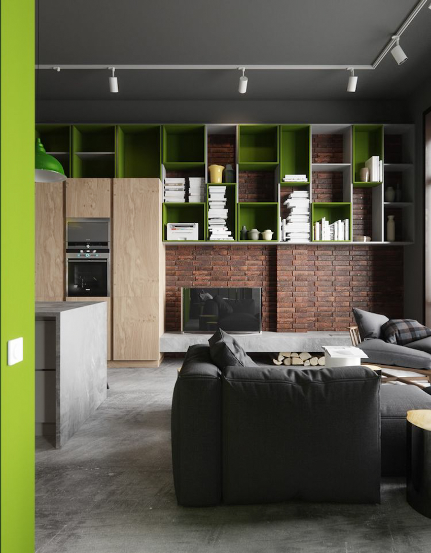 Những ý tưởng thiết kế tủ kệ hình khối hình học đơn giản, dễ dàng thi công, lắp đặt, kèm theo những bức tường màu sơn tươi trẻ, phá cách sẽ giúp không gian phòng khách nhà bạn hiện đại, đa năng hơn