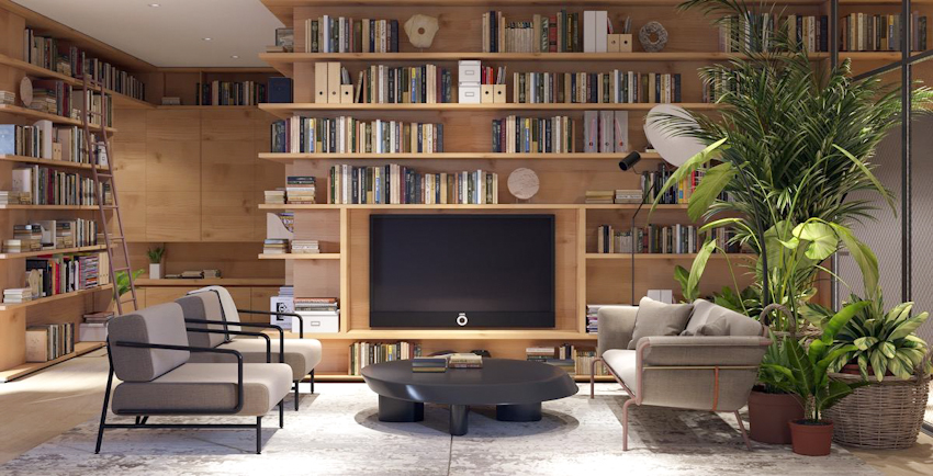 Không gian đọc gợi mở, bình yên với ý tưởng kết hợp kệ ti vi với hệ thống kệ sách Và một số mẫu thiết mang đến ý tưởng mới lạ trong thiết kế kệ ti vi cho nhà bạn: