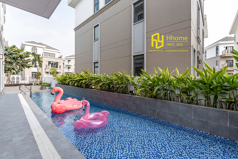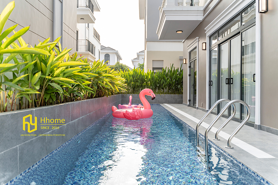 Đây là căn biệt thự thuộc phân khu The Grand Villas, là căn đầu tiên có thiết kế hồ bơi, là một trong hai công trình có hồ bơi vừa được hoàn thành bởi Hhome.