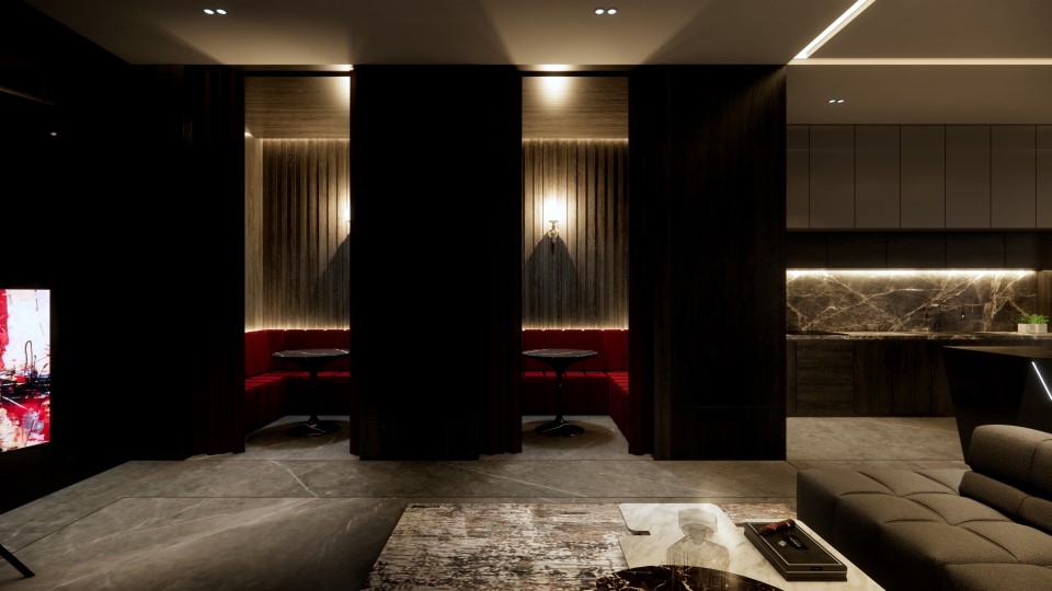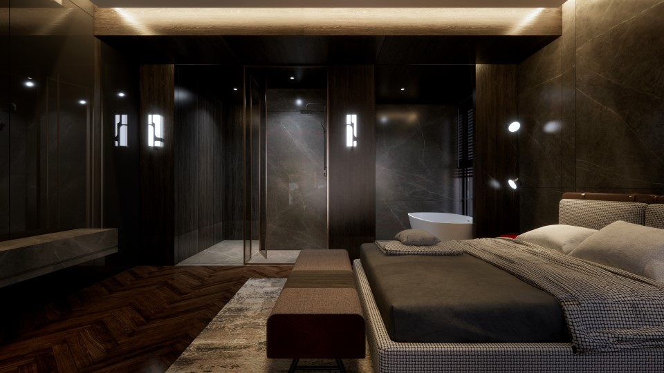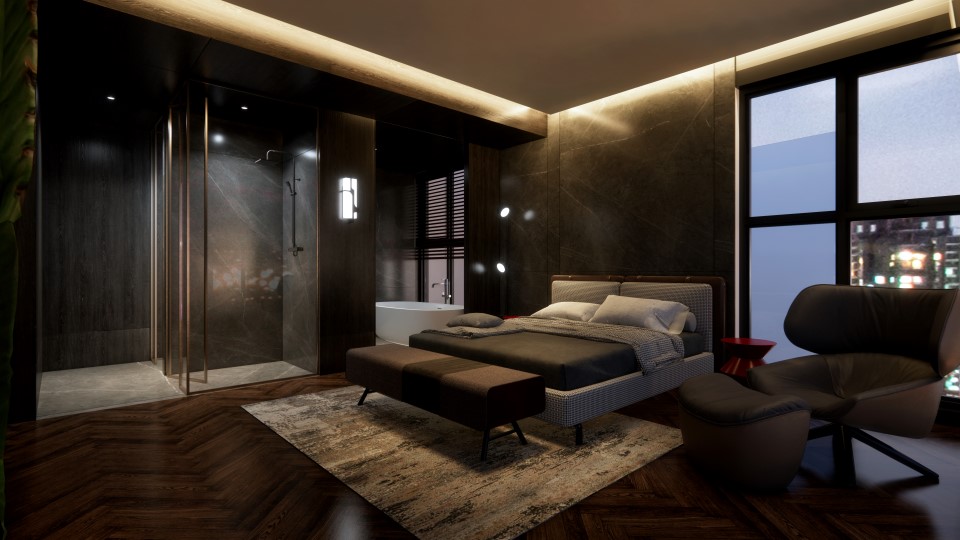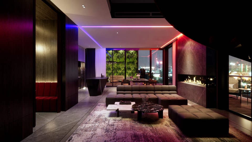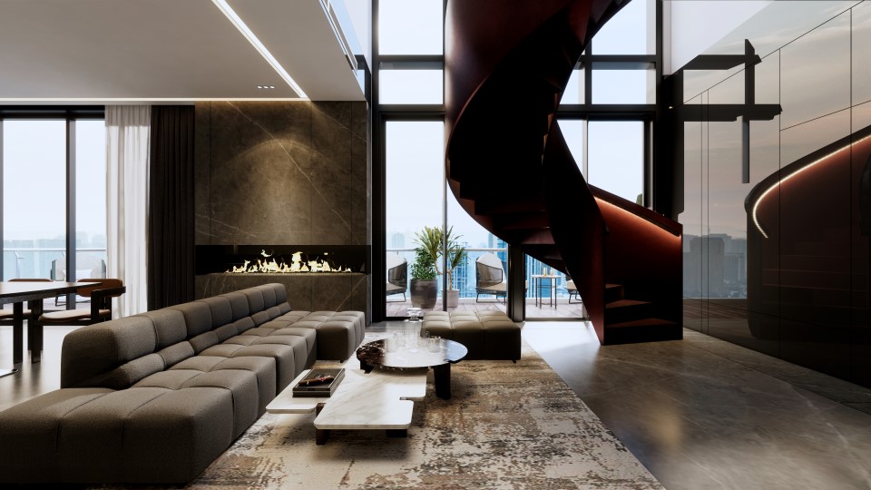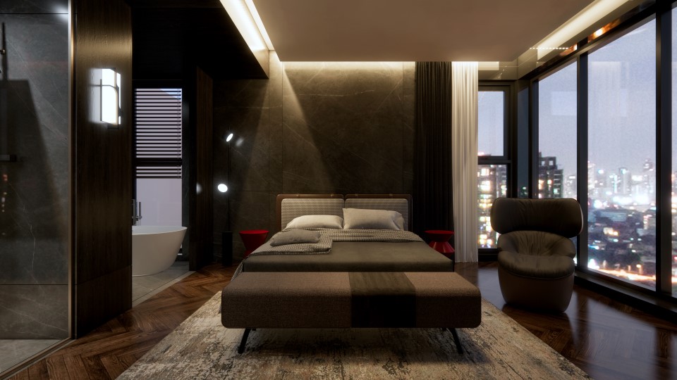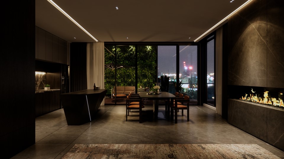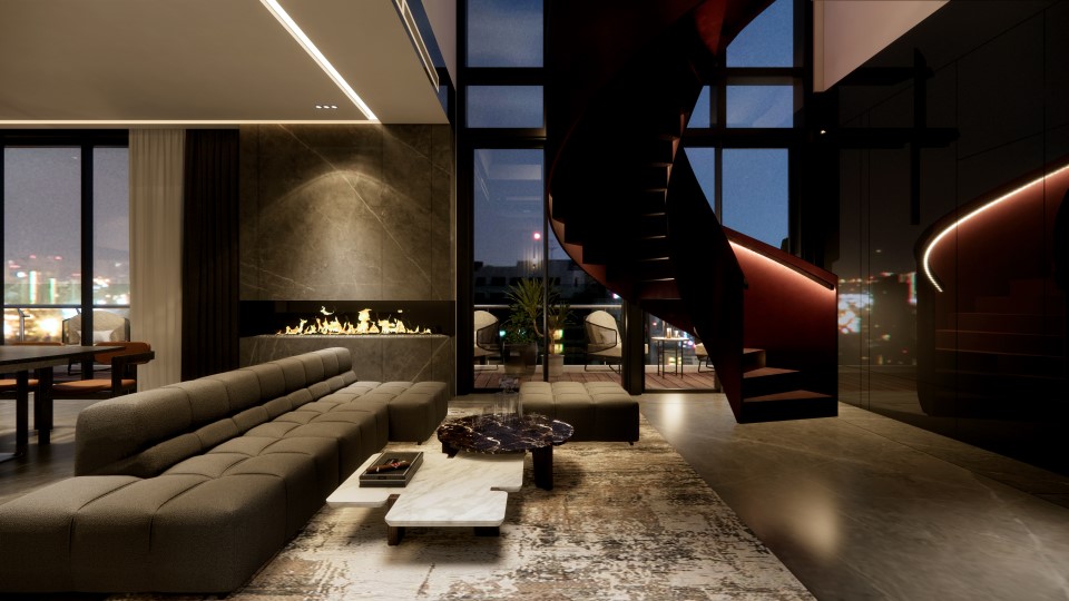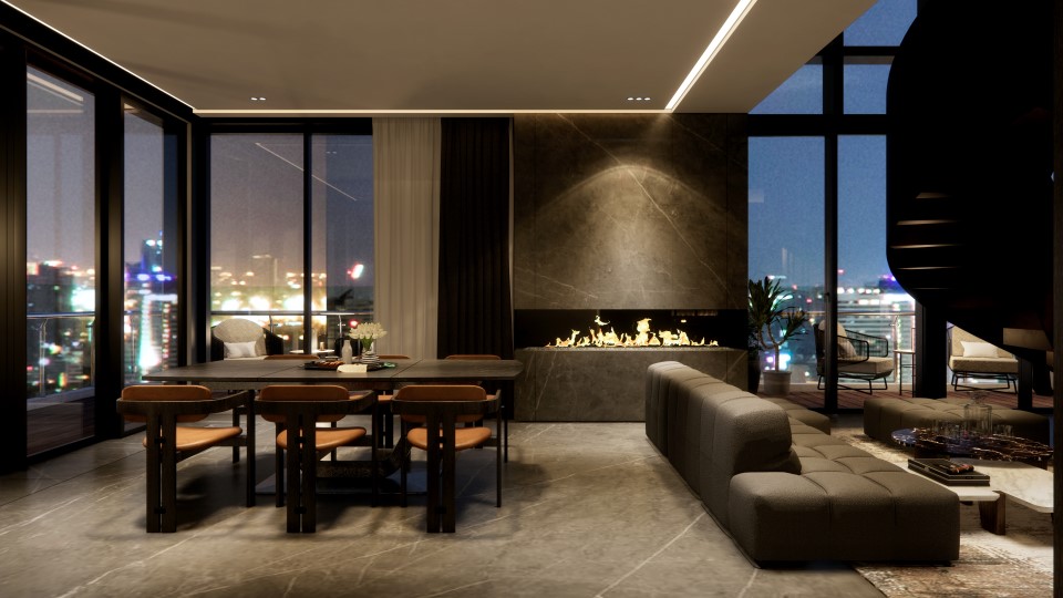 Sang trọng, cuốn hút cả ngày lẫn đêm, điểm nhấn cho căn Penthouse đẹp này là hệ thống đèn chiếu sáng đa tầng và sử dụng vật liệu tối màu giúp không gian thêm phần đẳng cấp.