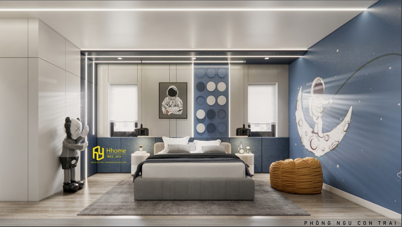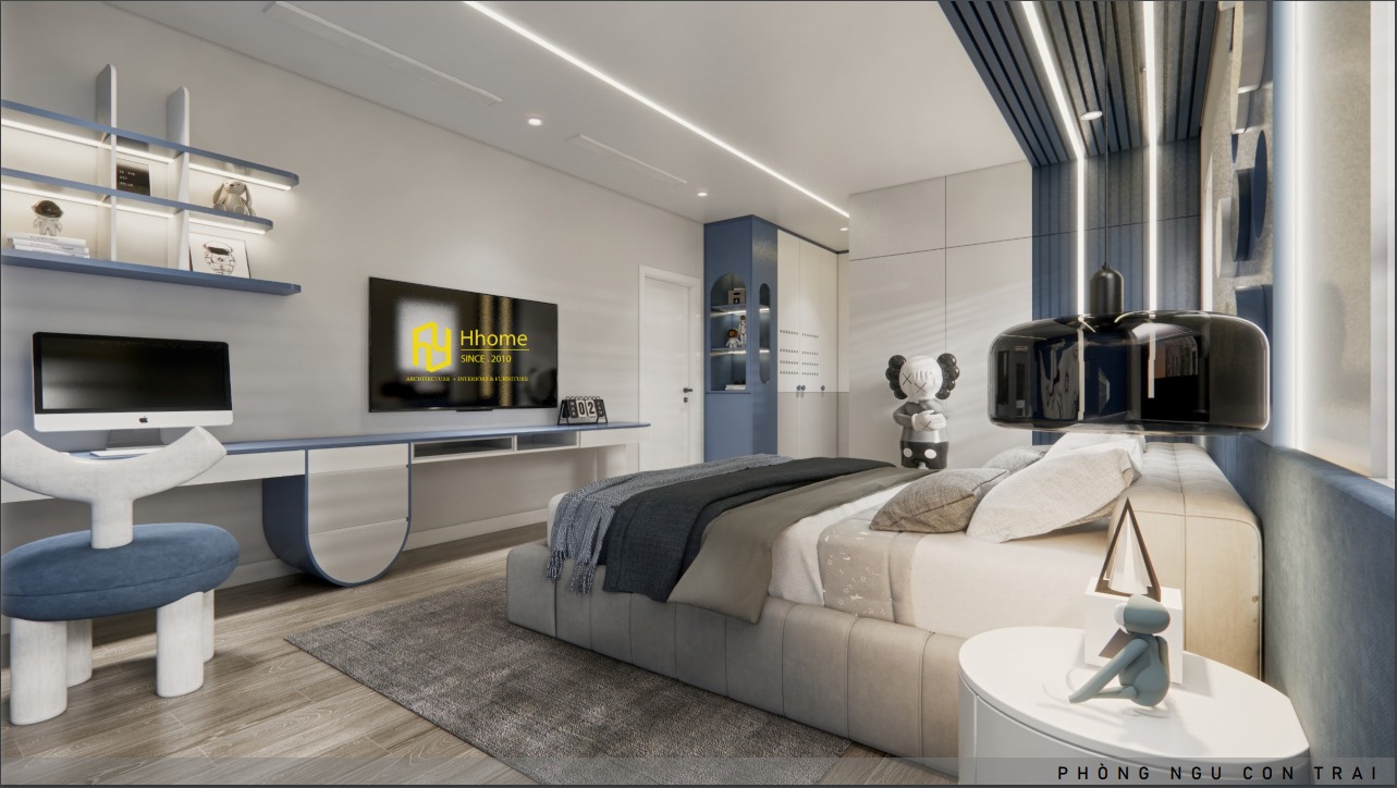 Căn phòng ngủ tinh tế này của Hhome là một ví dụ tuyệt vời về cách sắp đặt nội thất và triển khai màu sắc để mang lại cảm giác phù hợp cho phòng ngủ của các cậu trai. Nó mang lại cảm giác vừa hiện đại, vừa cổ điển vượt thời gian, khi kết hợp với chiếc giường thoải mái, khu vực học tập giải trí kết hợp để tạo nên một cái nhìn thực sự độc đáo và tươi mới.