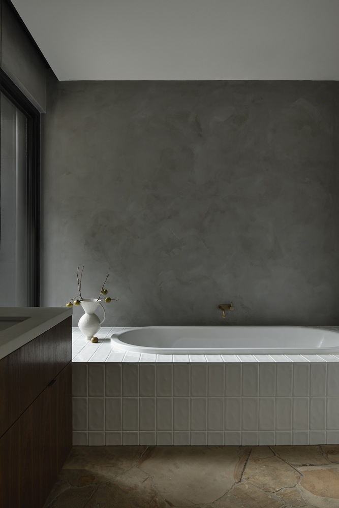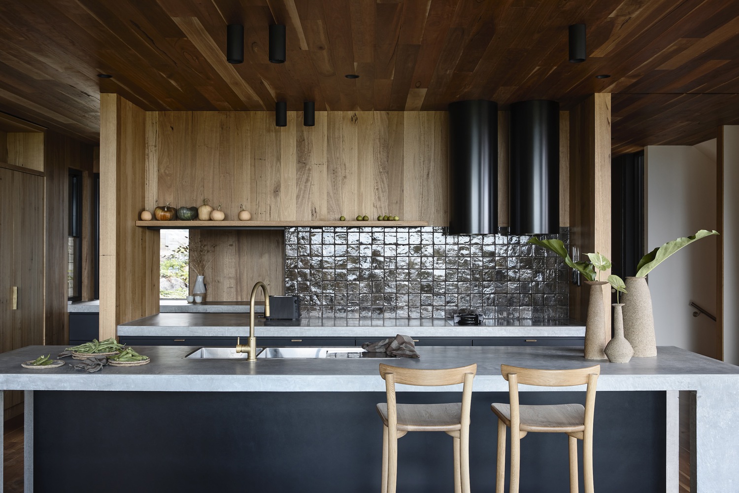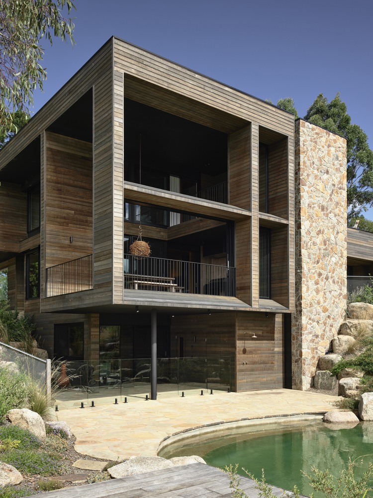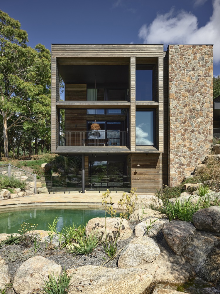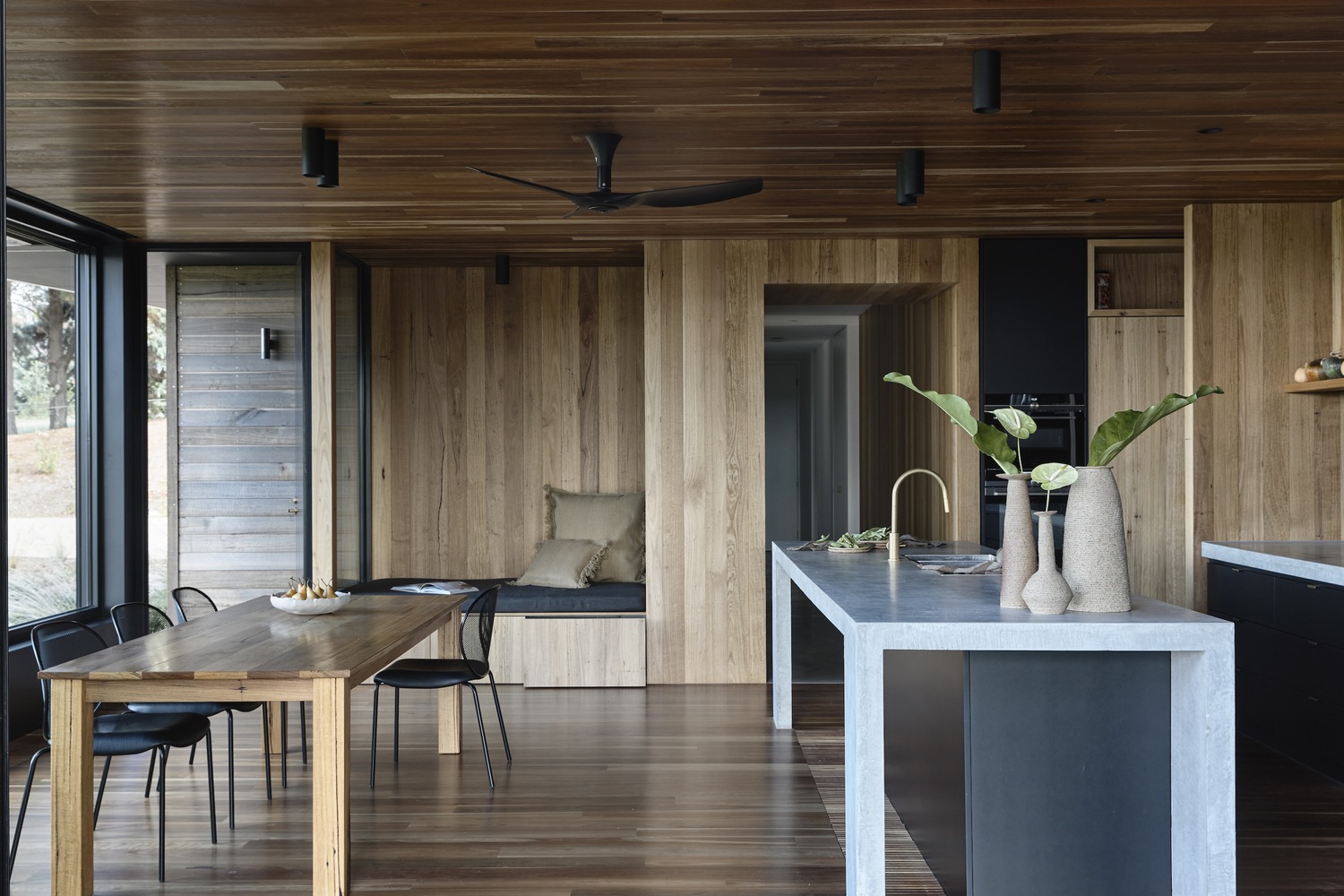 Cặp đôi sở hữu công trình này rất quan tâm đến việc sử dụng các loại vật liệu tự nhiên. Chính vì vậy mà các vật liệu tự nhiên chắc chắn như đá granit được sử dụng để tạo thành bức tường bên ngoài. Ở bên trong, bề mặt tường làm bằng nguyên liệu gỗ cứng cực kỳ phổ biến ở Úc để giúp giảm thiểu việc phải sử dụng tấm thạch cao trong nhà.