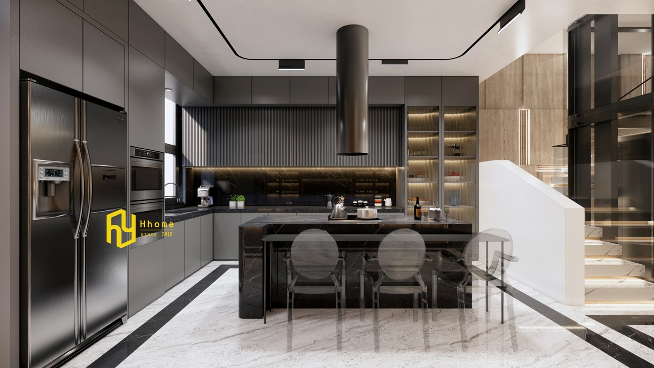 Cùng chiêm ngưỡng những hình ảnh sau của Sari Town để khám phá cách Hhome khéo léo khắc phục vấn đề để mang nhiều ánh sáng hơn vào nhà bếp và phòng gia đình, và vẫn tạo ra một không gian đẳng cấp sang trọng, mạnh mẽ mà gia chủ mong muốn.