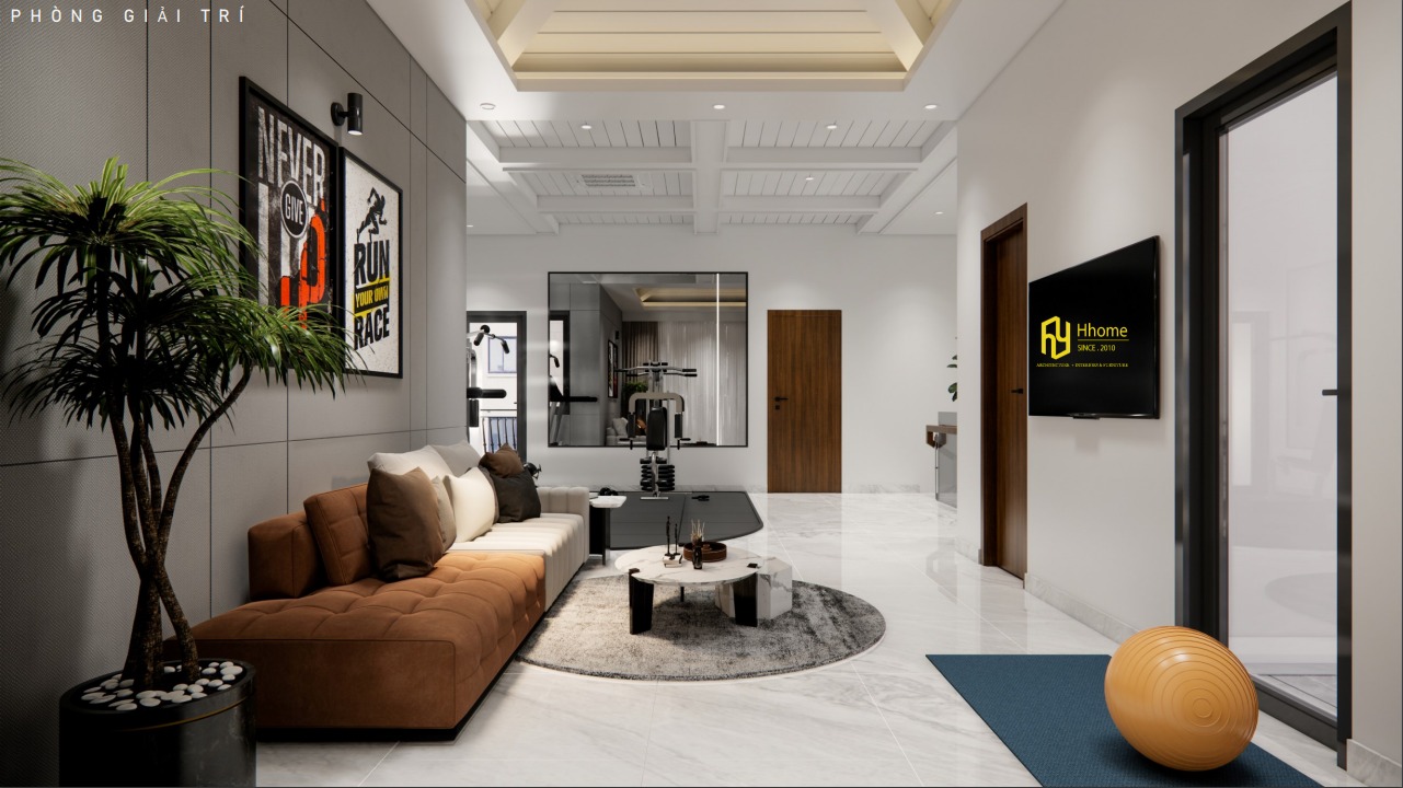 Nếu bạn đang tìm kiếm một số ý tưởng phòng giải trí tuyệt vời thì thiết kế này của Hhome hoàn toàn phù hợp với bạn. Chỗ ngồi thoải mái, TV khổng lồ và không gian rộng rãi để bạn thư giãn và nghỉ ngơi. Chỉ cần kết nối PlayStation của bạn và tận hưởng một đêm chơi game với bạn bè. Hoặc bạn cũng có thể thêm một số thiết bị tập thể dục để có thể rèn luyện sức khỏe giữa lúc chơi điện tử và đọc sách. Phòng tập thể dục được trang bị tốt sẽ giúp bạn giữ được cơ thể cân đối và tràn đầy năng lượng, sảng khoái đầu óc bất cứ khi nào bạn cần nghỉ ngơi sau các hoạt động hàng ngày.