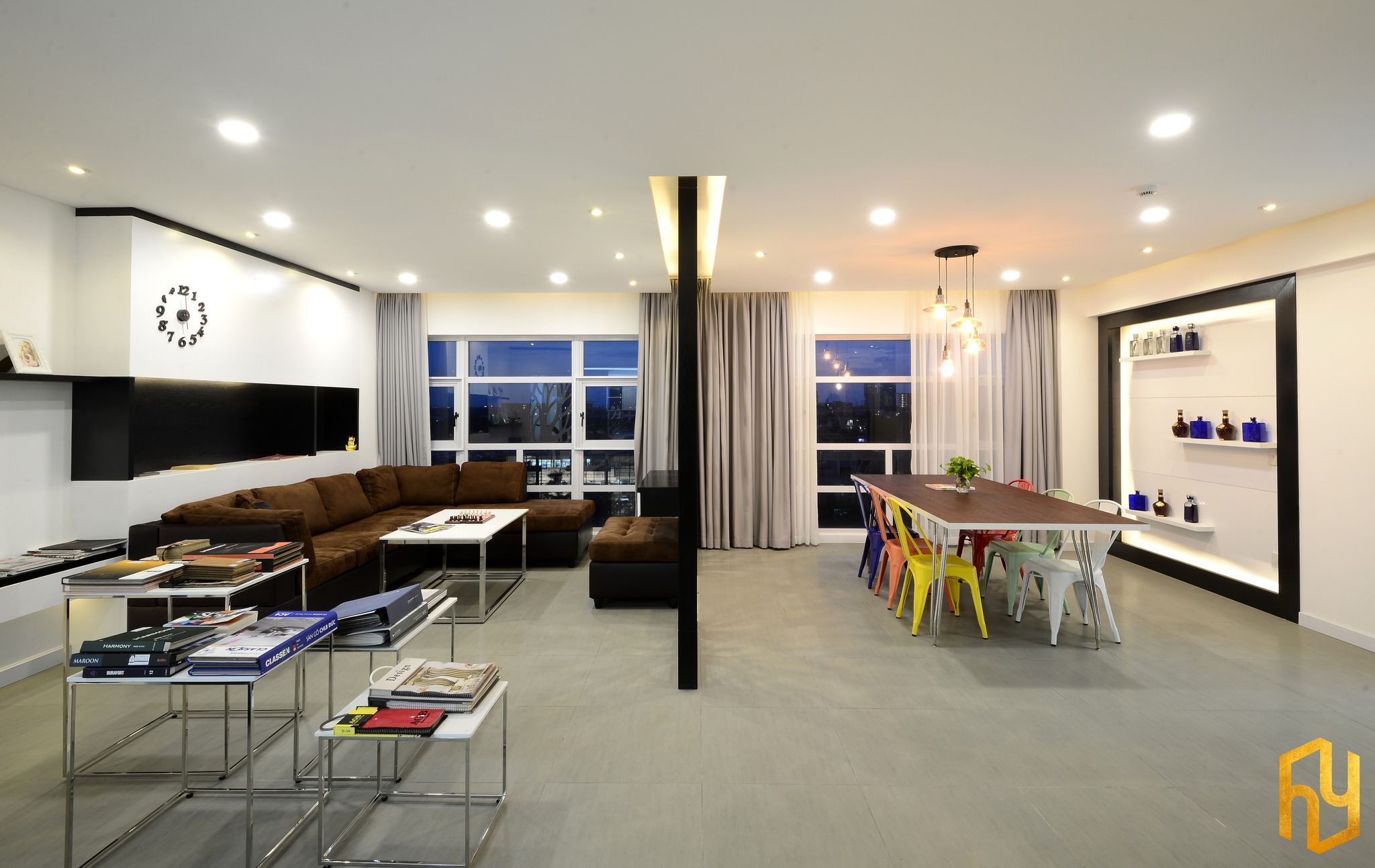 Căn hộ Farby là tổ ấm gia đình với kết cấu hai tầng kết hợp nhiều phong cách, xu hướng thẩm mỹ và sắc thái nghệ thuật khác nhau.