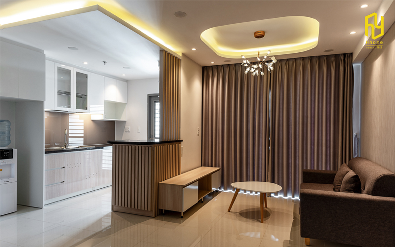 Căn hộ theo phong cách Hiện Đại, với gam màu sáng nhưng không kém phần sang trọng, tông màu sáng tạo cảm giác cho căn hộ nhỏ trông rộng và thóng hơn.