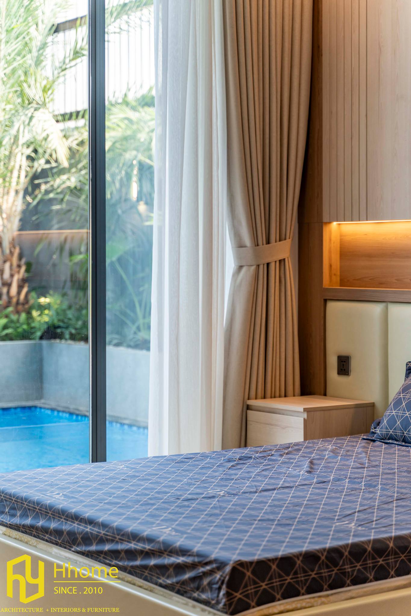 Với các không gian liền kề như phòng ngủ, bạn có thể thiết lập hệ thống cửa kính để tận dụng vẻ đẹp của cảnh quan này, mang lại sự thư giãn tối đa cho các không gian cần thiết lập bầu không khí nhẹ nhàng này.