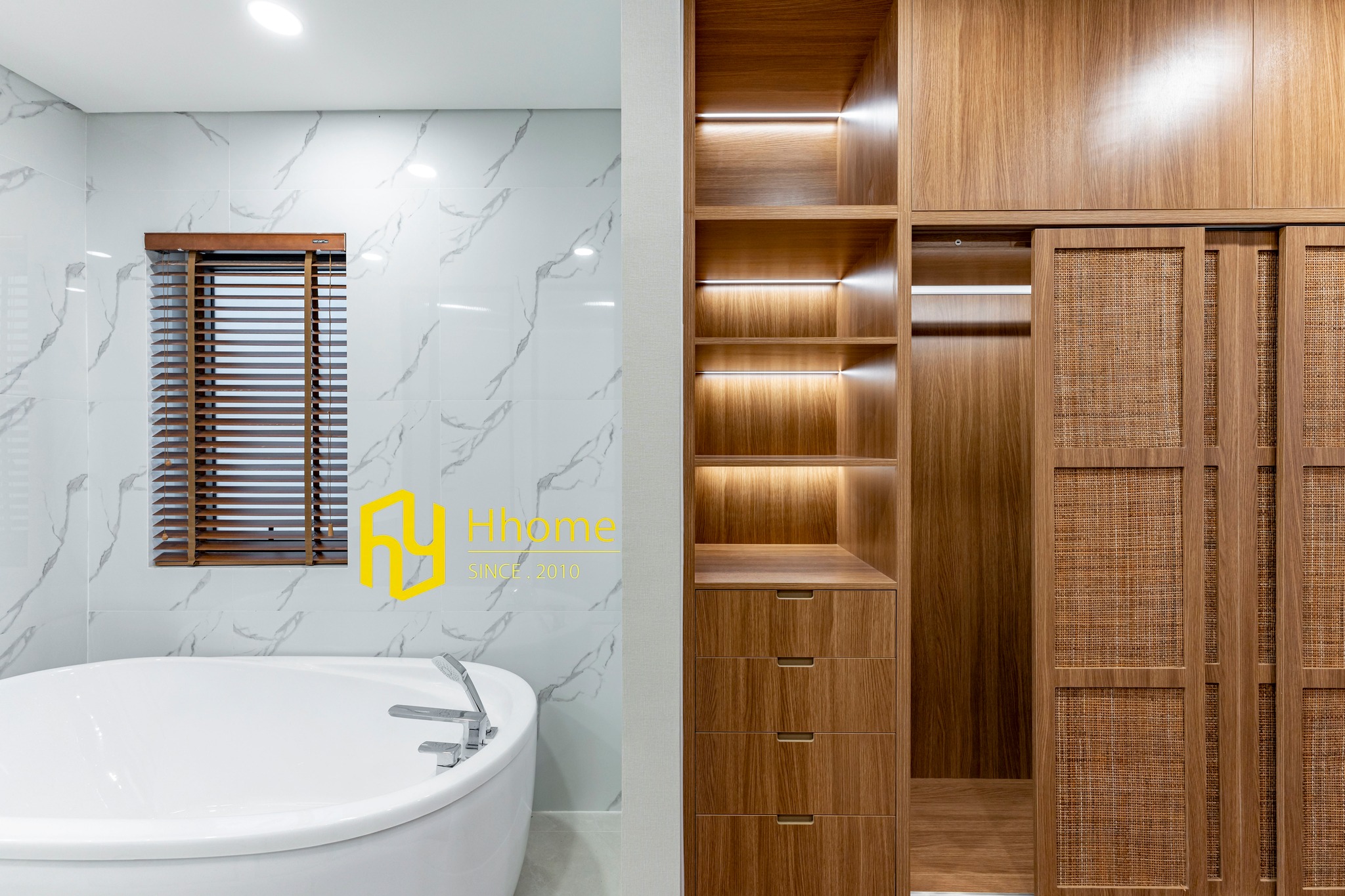 Nếu có không gian lớn, hãy dành ra một khu vực rộng để kiến tạo phòng thay đồ gắn liền với không gian nhà tắm. Đây là nơi để bạn thỏa sức sáng tạo những ý tưởng hiện đại đắt tiền như phòng tắm hơi hoặc hệ thống âm thanh phức tạp, không cần đề phòng trẻ em hoặc những vị khách không được trang bị kiến thức. Chỉ cần tận hưởng thiết kế sang trọng theo phong cách cá nhân của bạn.