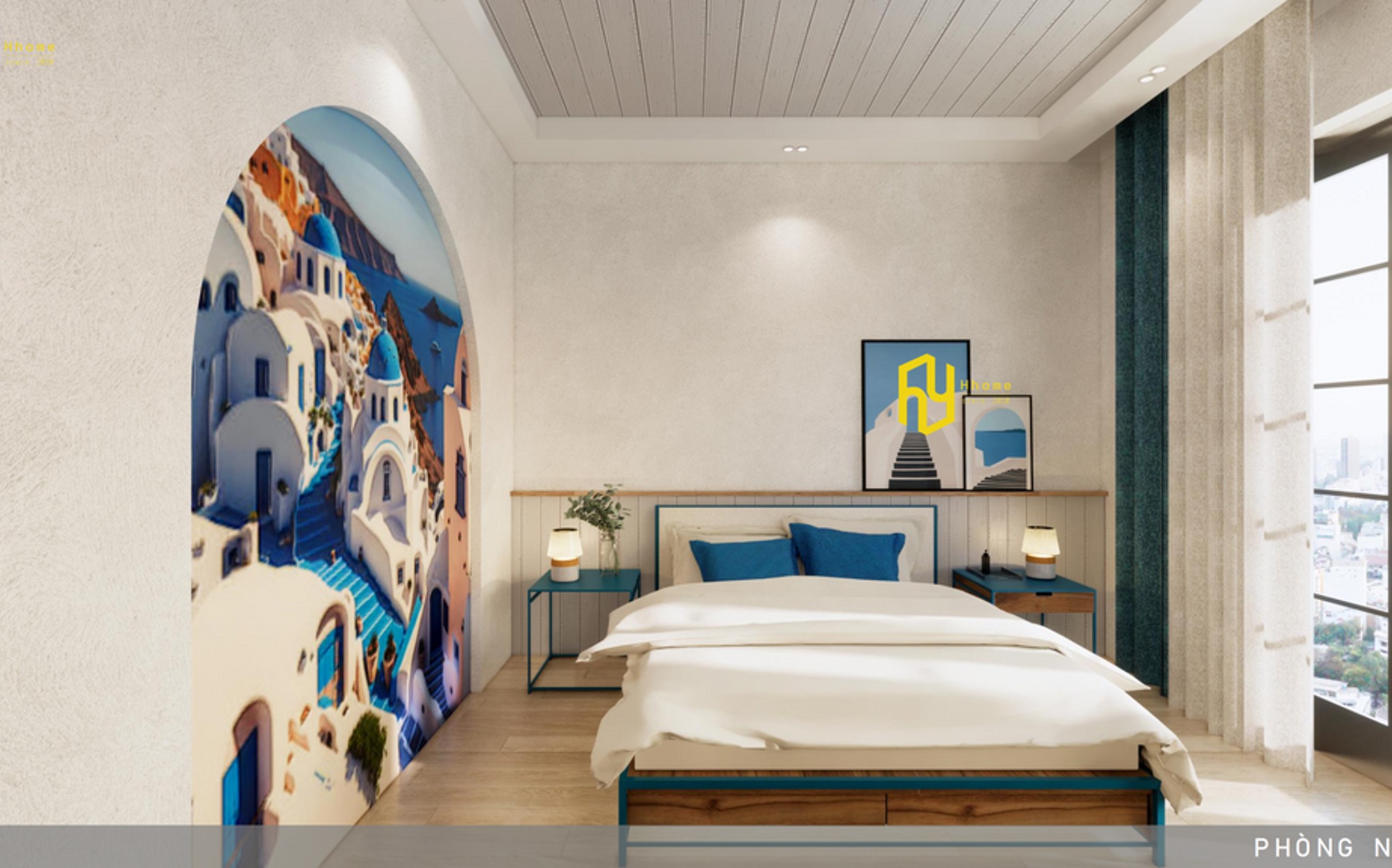 Sự kết hợp giữa nội thất cao cấp và phong cách biển hiện đại, tươi mới lấy cảm hứng từ một hòn đảo nghỉ dưỡng nổi tiếng tại Hy Lạp, đã tạo ra một không gian nghỉ dưỡng xứng tầm ngay cả khi bạn không sống gần bờ biển.